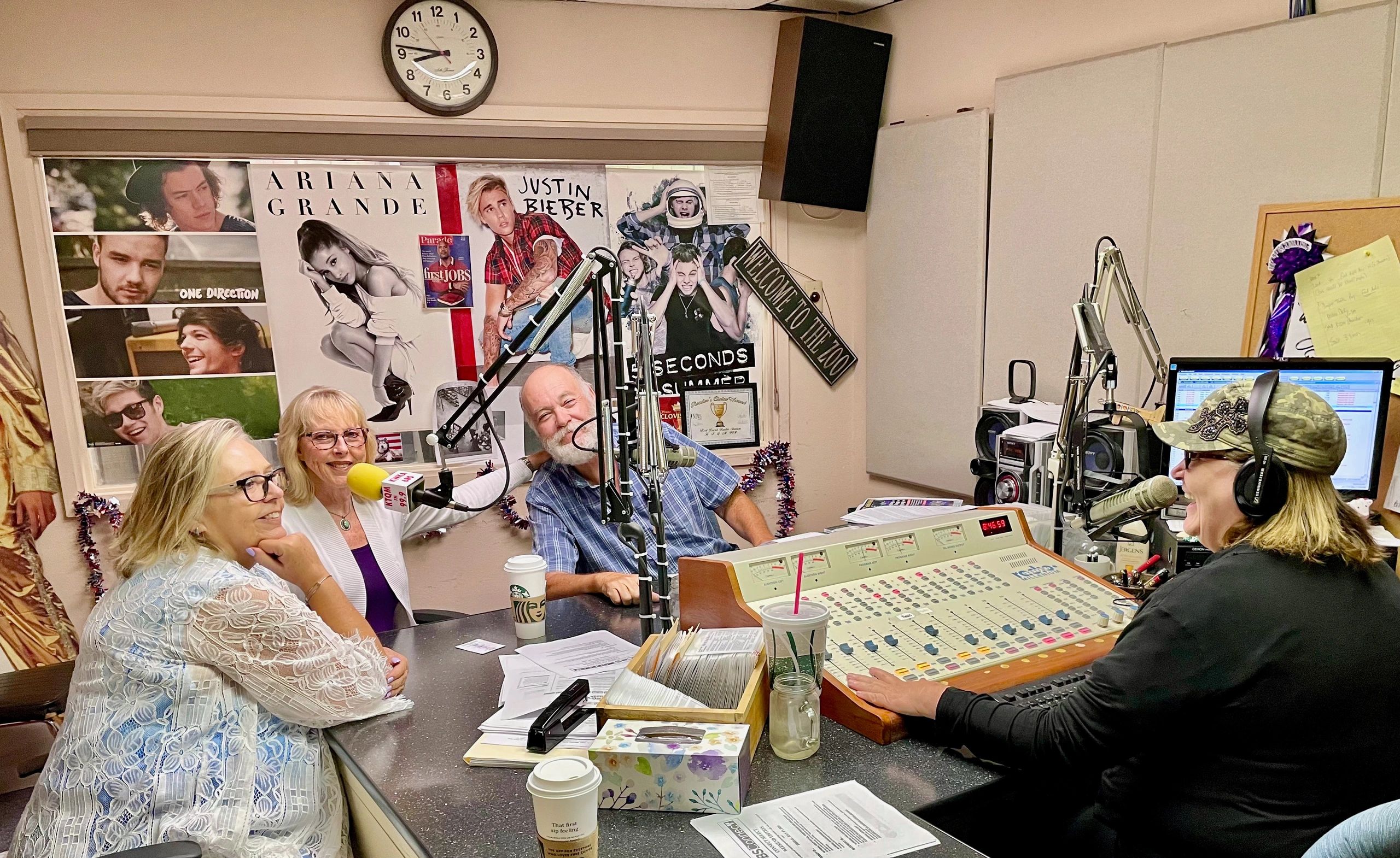 With narrator F Michelle Williams (far L), yours truly, and radio host Grant McGee & Terri Chavez at the studios of KTQM/KCLV FM in Clovis, NM, as Michelle and I celebrate decades of friendship and our collaboration on our audiobook,